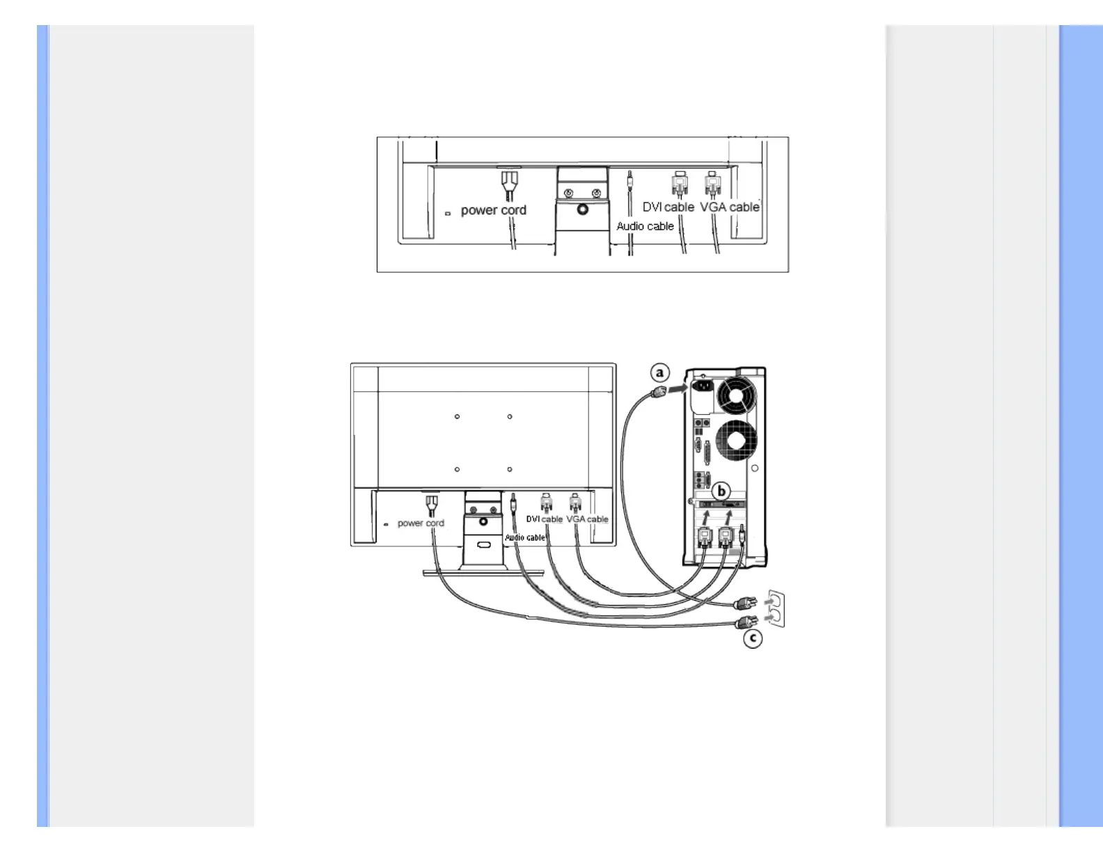 (c) Plug the power cord of your computer and your monitor into a nearby outlet.