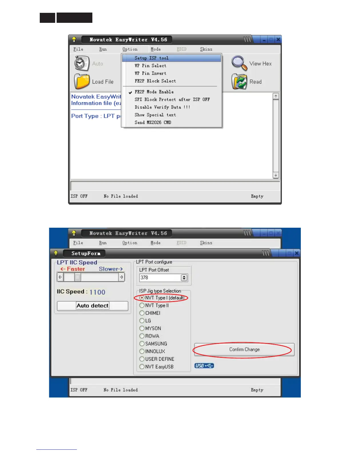 4. Select the “NVT Type I (default)”, click the icon “Confirm Change”. and then click the “OK”