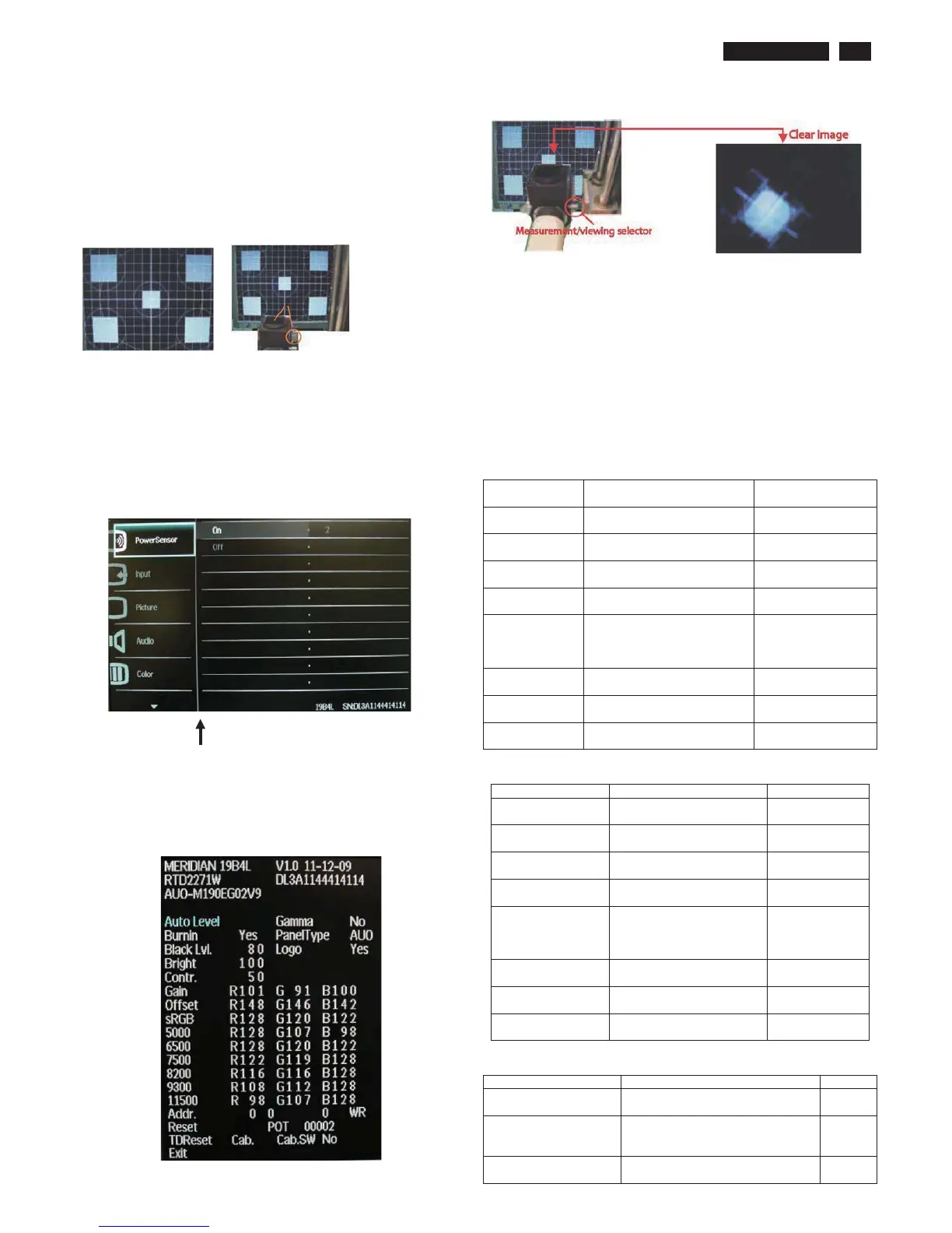 Characters " MERIDIAN 19B4L V1.0 11-12-09” (below OSD menu) come