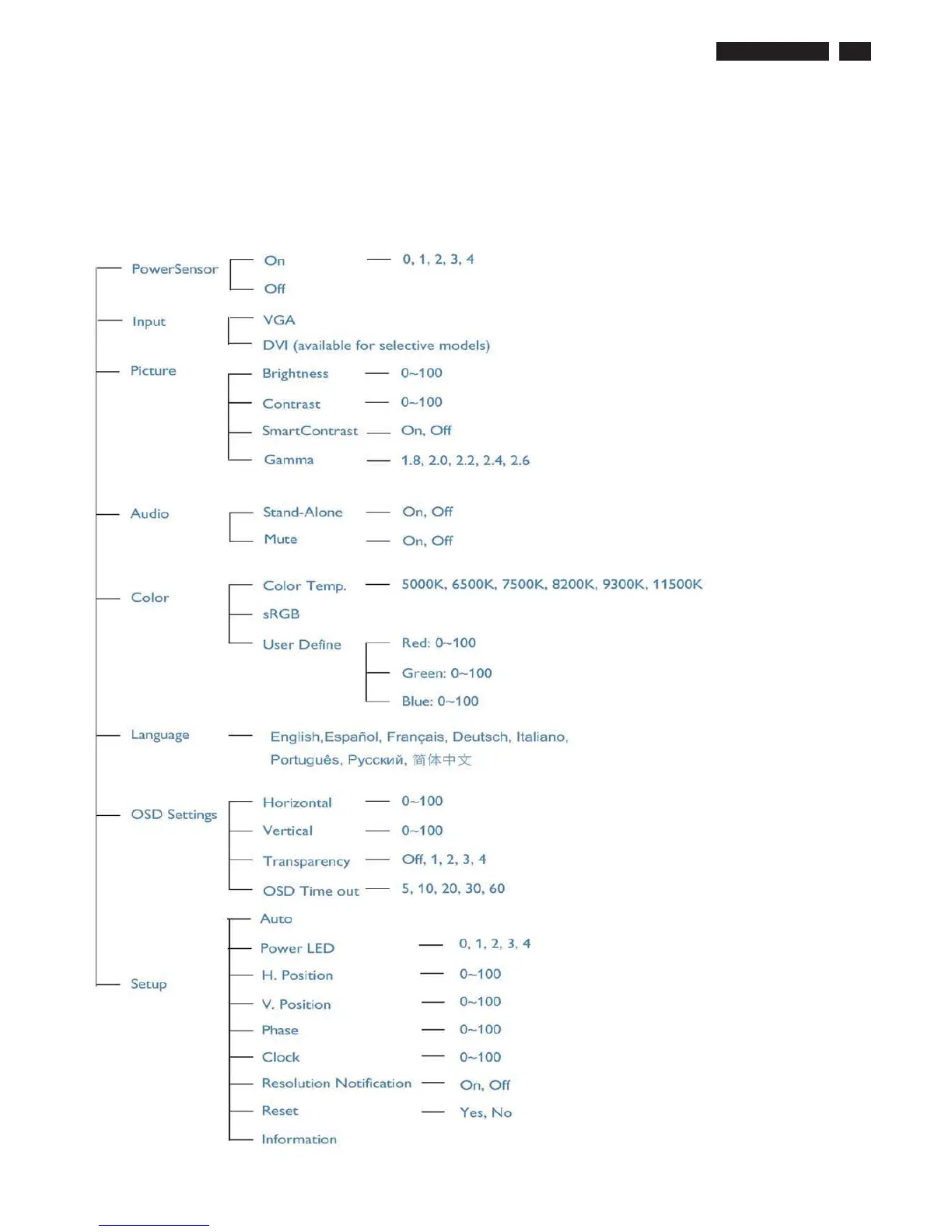 Below is an overall view of the structure of the On-Screen Display. You can use this as a reference when you want to work