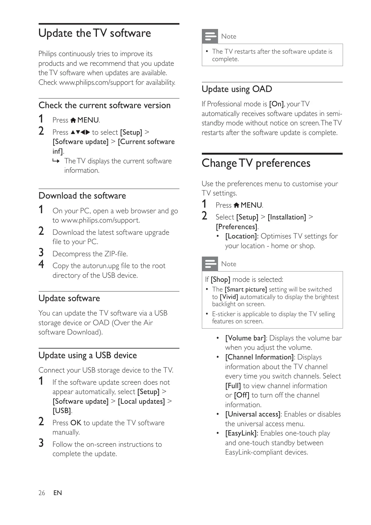 You can update the TV software via a USB