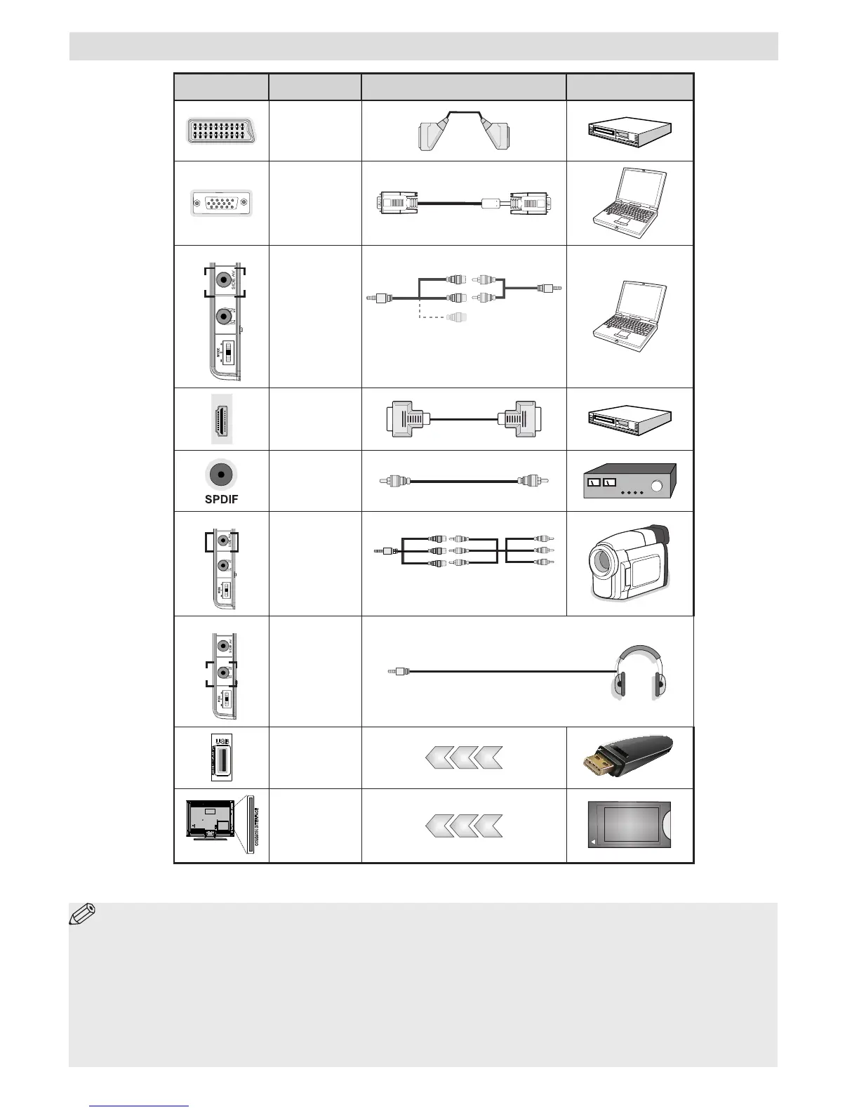 cable’s WHITE & RED inputs. | If an external device is connected via the SCART socket, the TV will automatically switch to