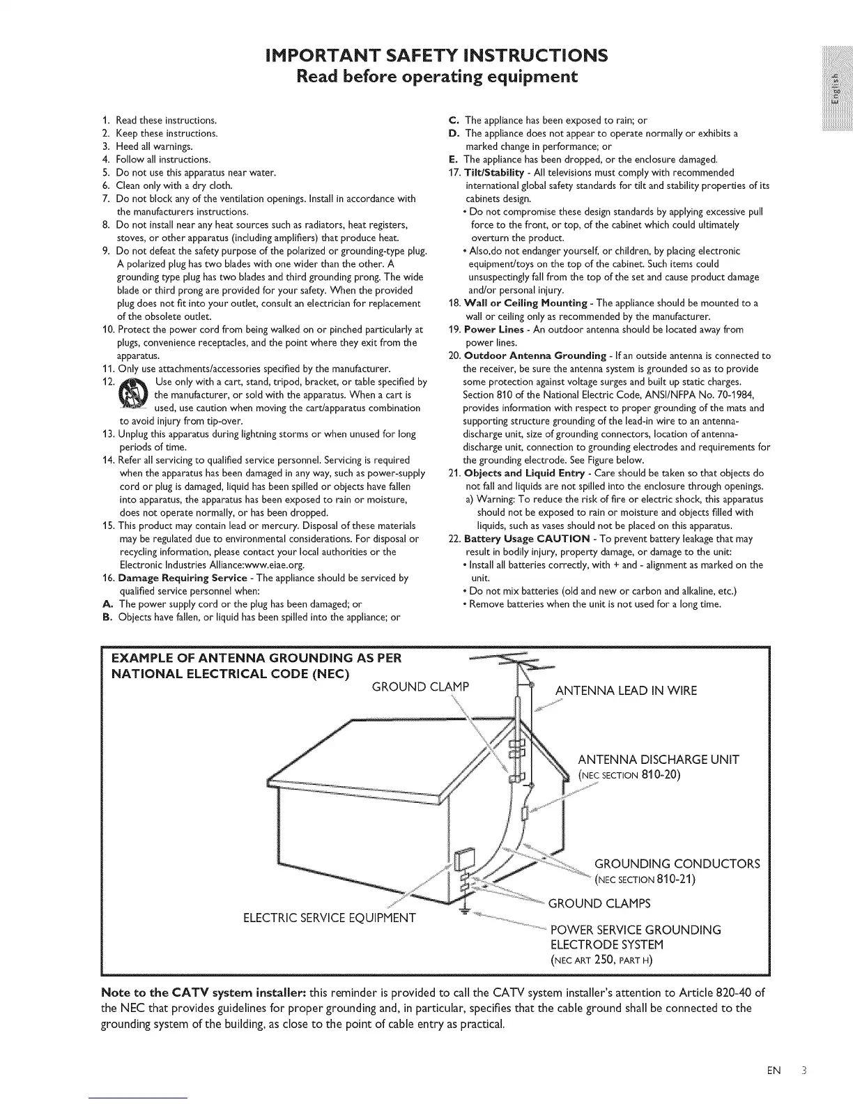 Note to the CATV system installer: this reminder is provided to call the CATV system installer's attention to Article 820-40 of