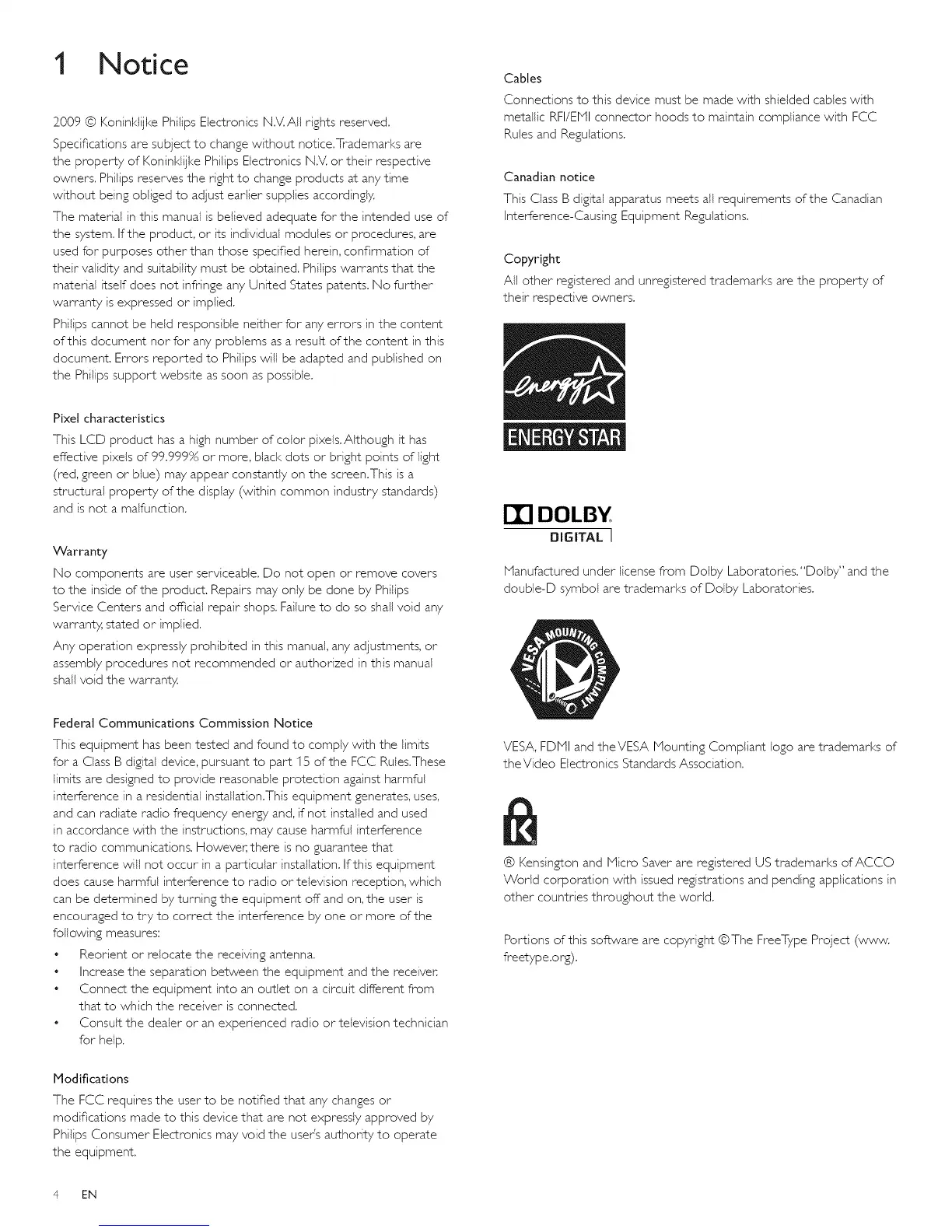 VESA, FDll and theVESA Mounting Compliant logo are trademarks of