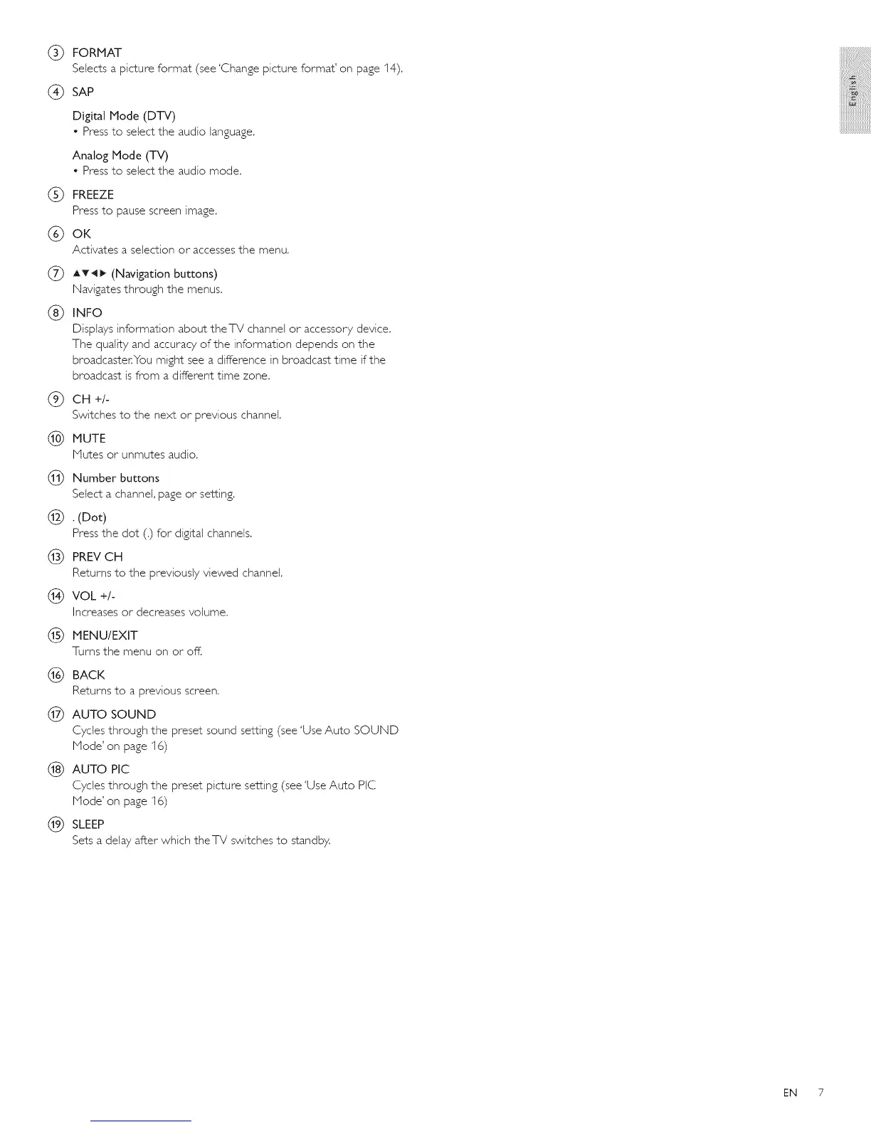 Cycles through the preset sound setting (see 'Use Auto SOUND