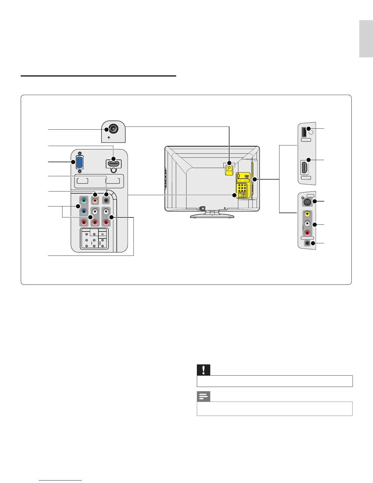 • Different types of connectors may be used to connect a device to your TV, depending