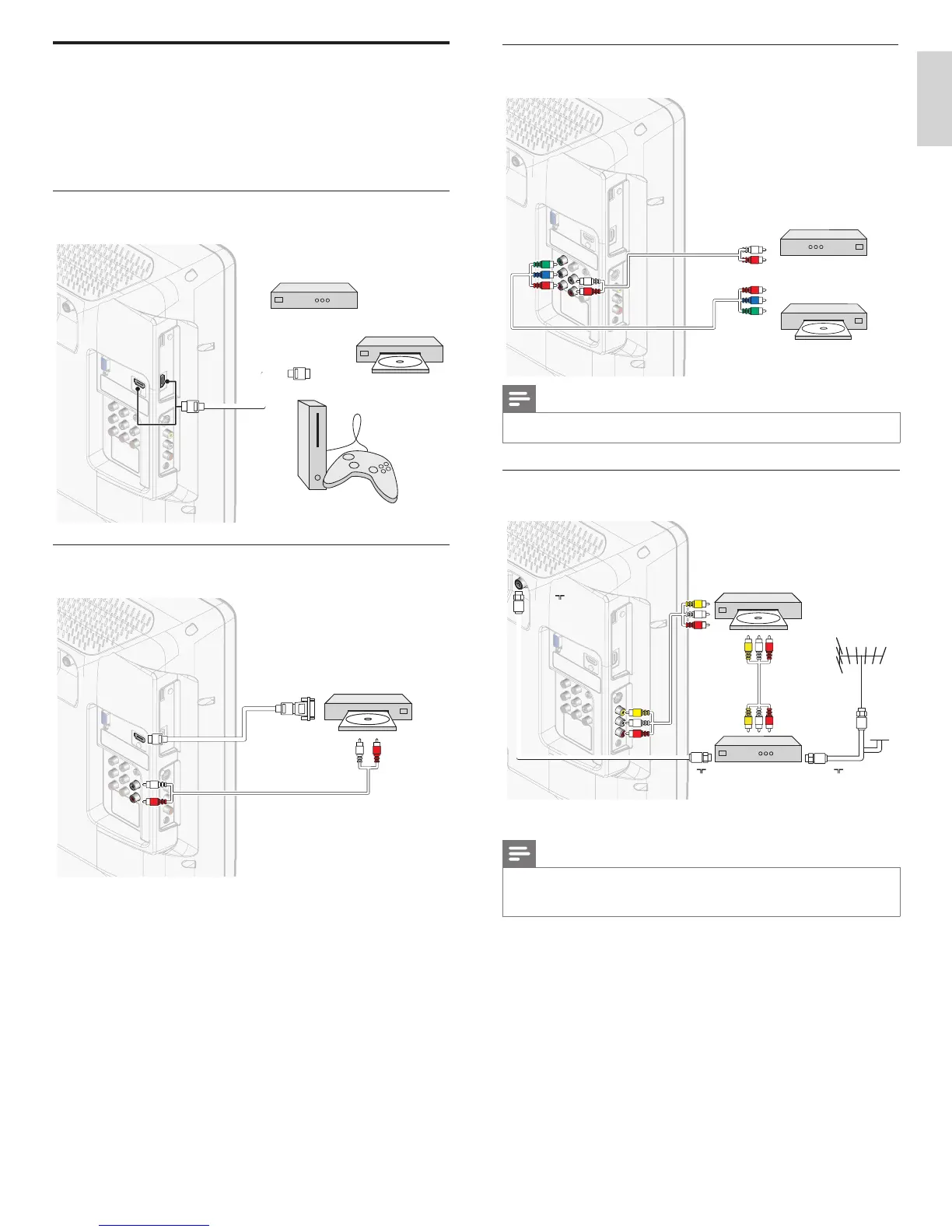 • When you connect cables, match the cable colors to the connectors on the TV.