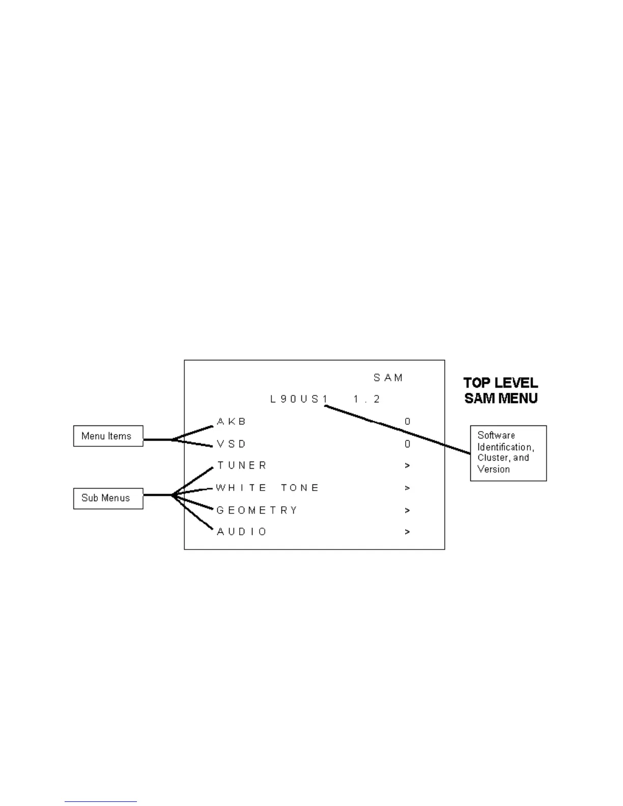 Explanation of top level SAM menu display: