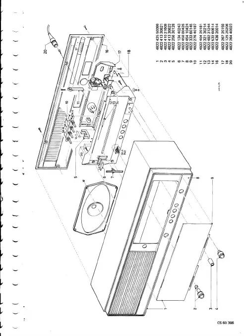 Philips 19RB344 - Exploded View and Parts List; Radio Assembly Diagram; Component Part Numbers