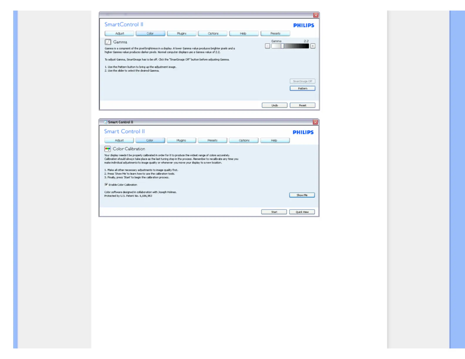 1. "Show Me" starts color calibration tutorial.