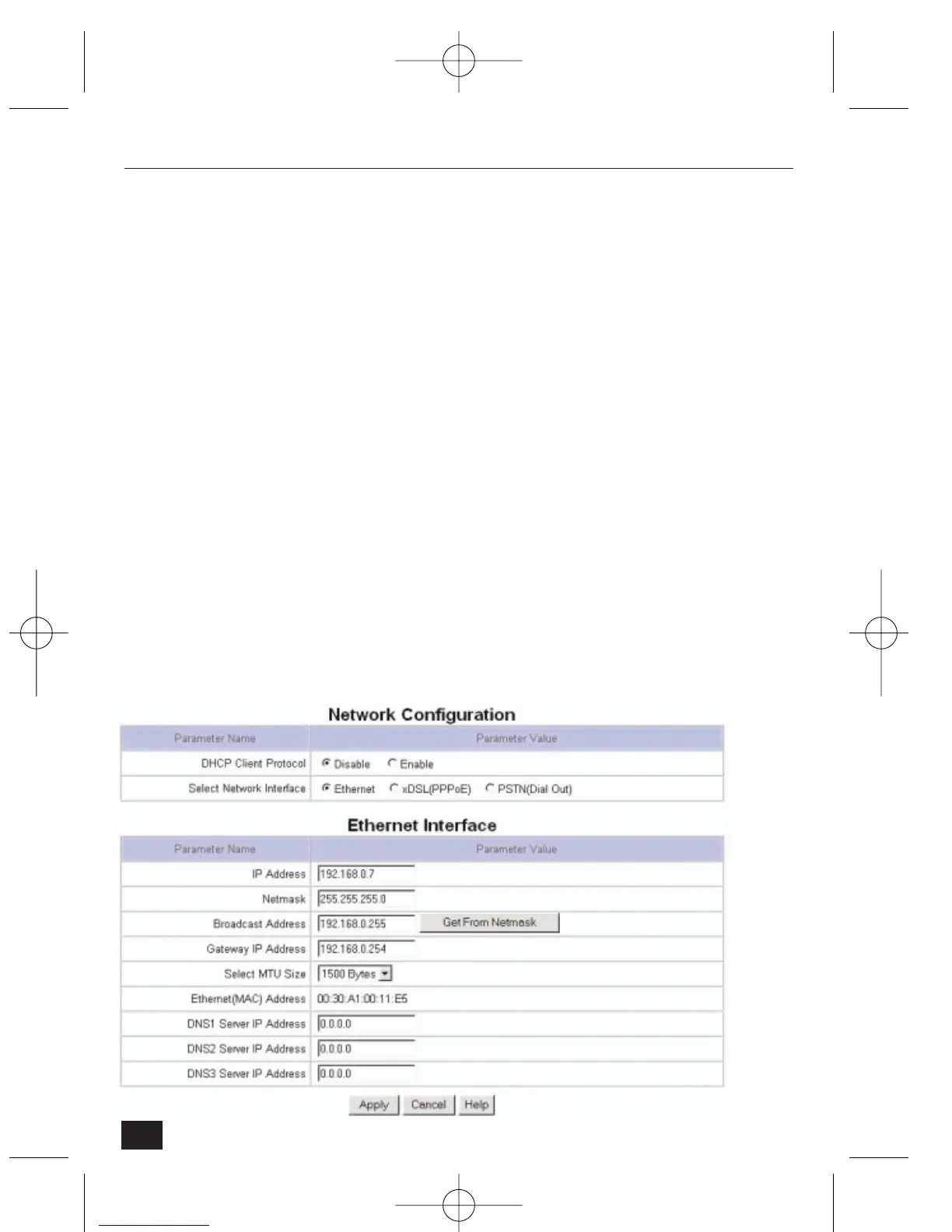 The IP address, Network Mask, Broadcast address, Gateway address, and DNS