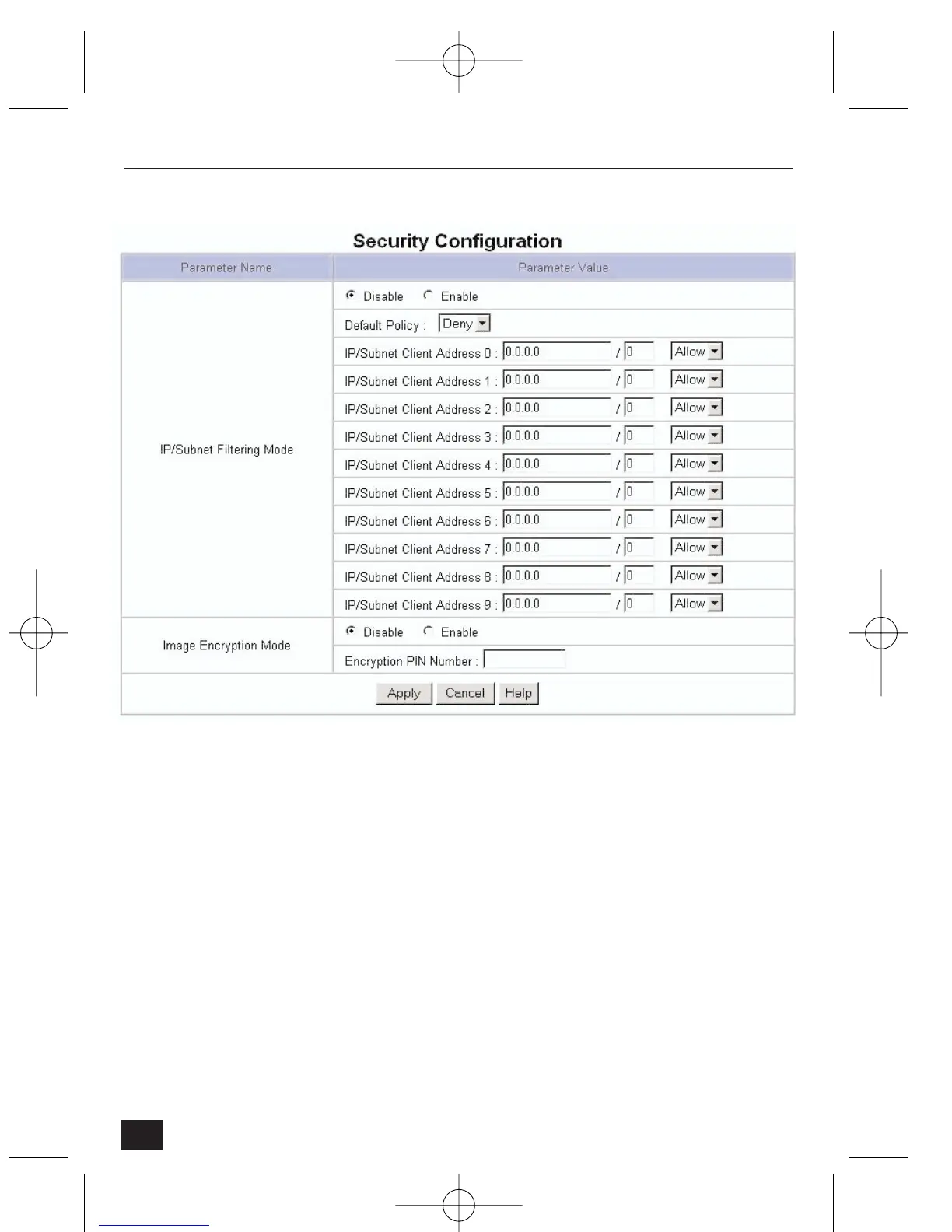 • Select 'Enable' to activate the IP/Subnet filtering mode.
