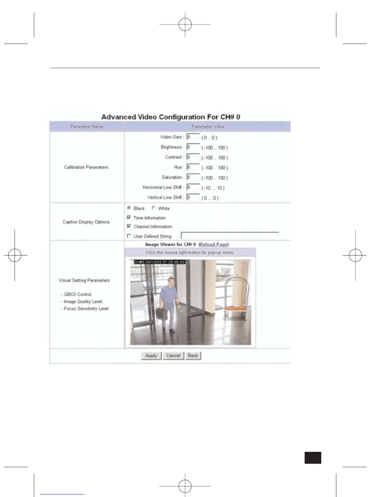 hue, saturation, horizontal line shift, and vertical line shift.