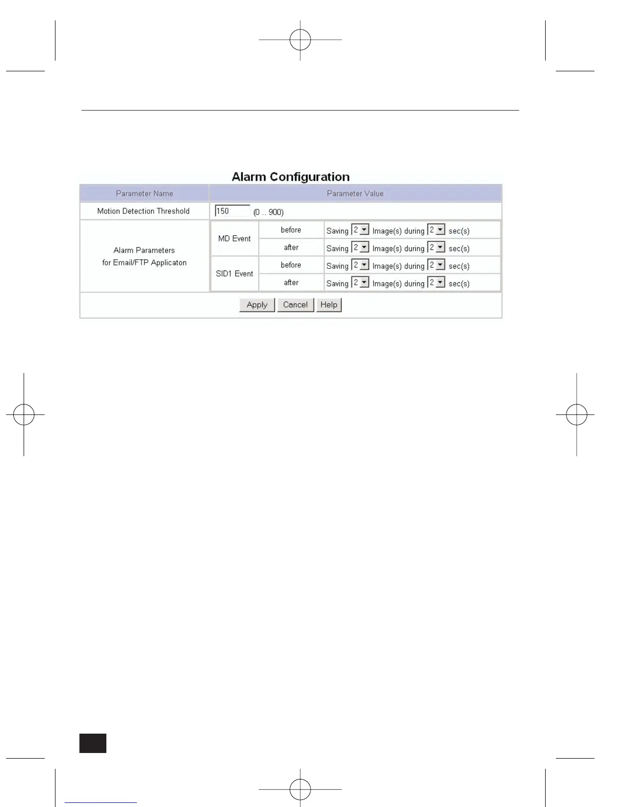 • Alarm Parameters for E-mail / FTP Application: - defines the image-