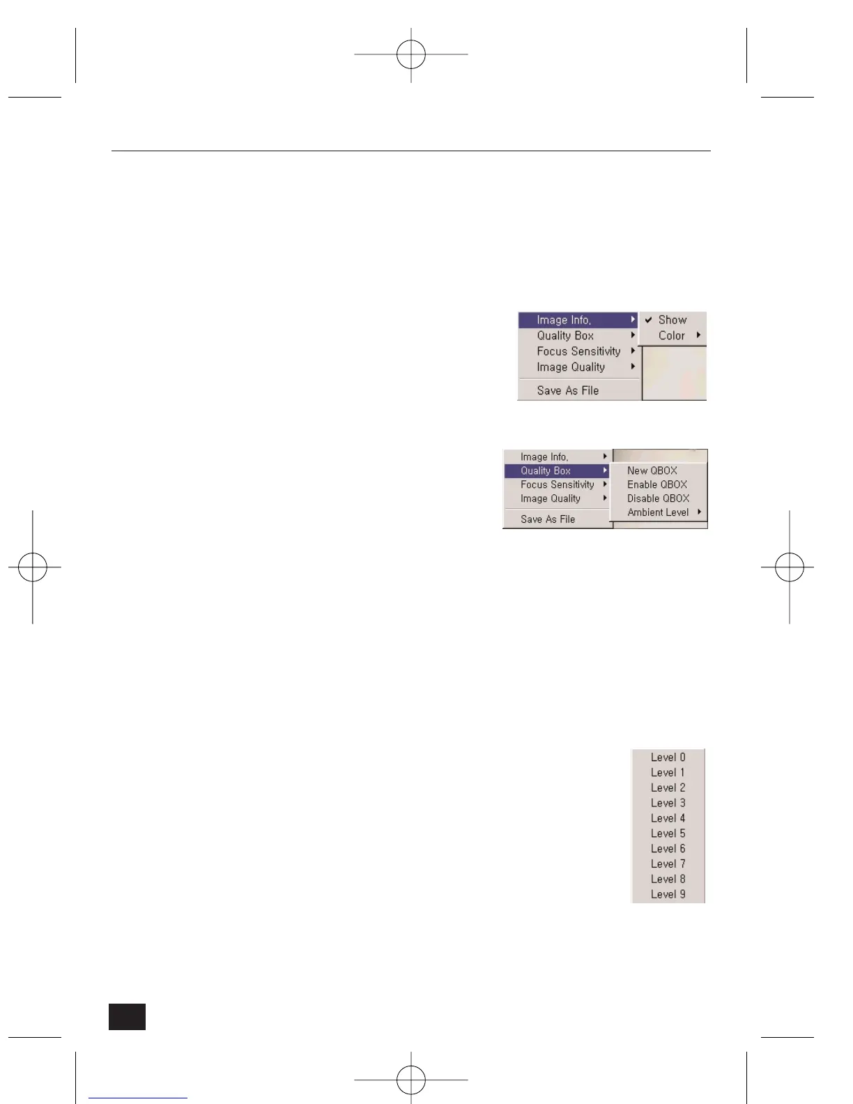 ‘Image Info’, ‘Quality Box’, ‘Focus Sensitivity’, and ‘Image Quality’.