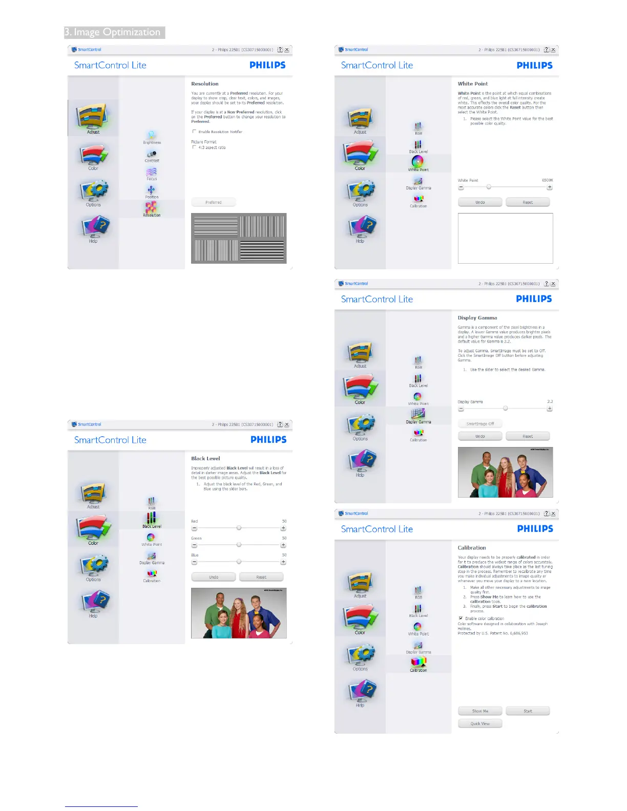 Level, White Point, and Color Calibration.
