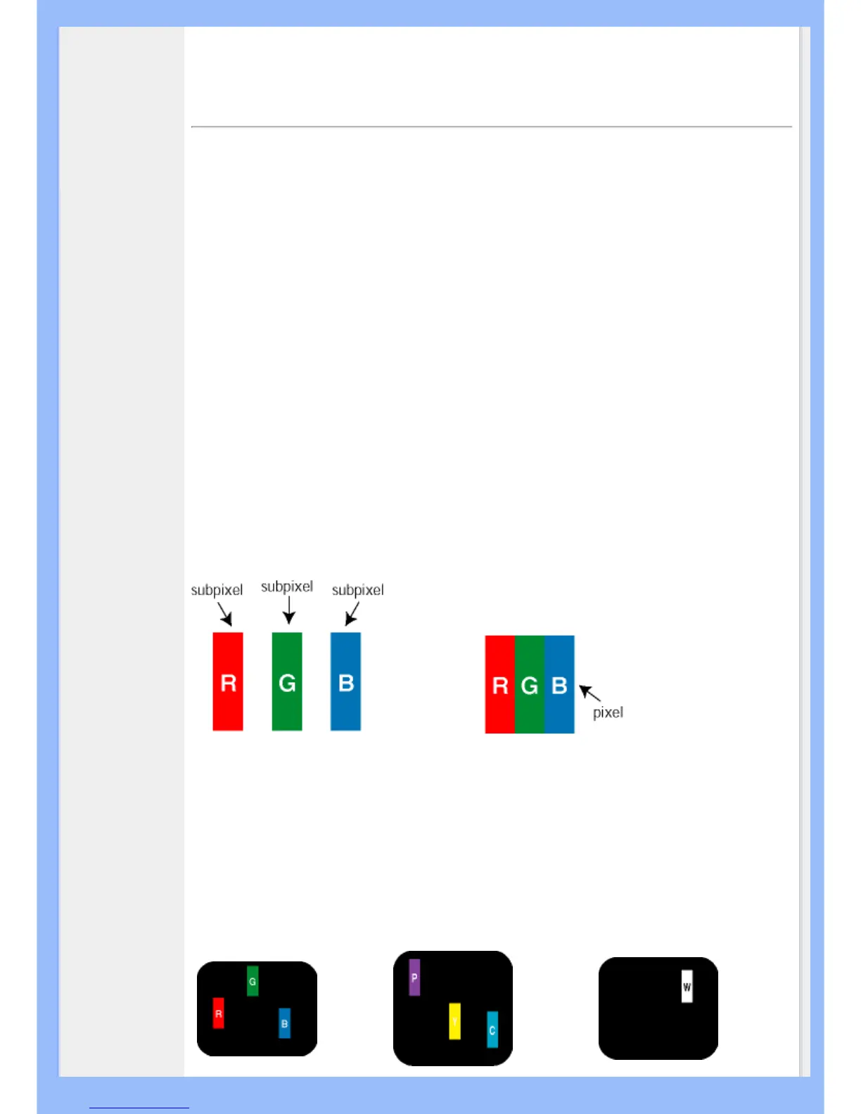 subpixeles en los panes TFT LCD utilizados en monitores de panel chato. Ningún fabricante