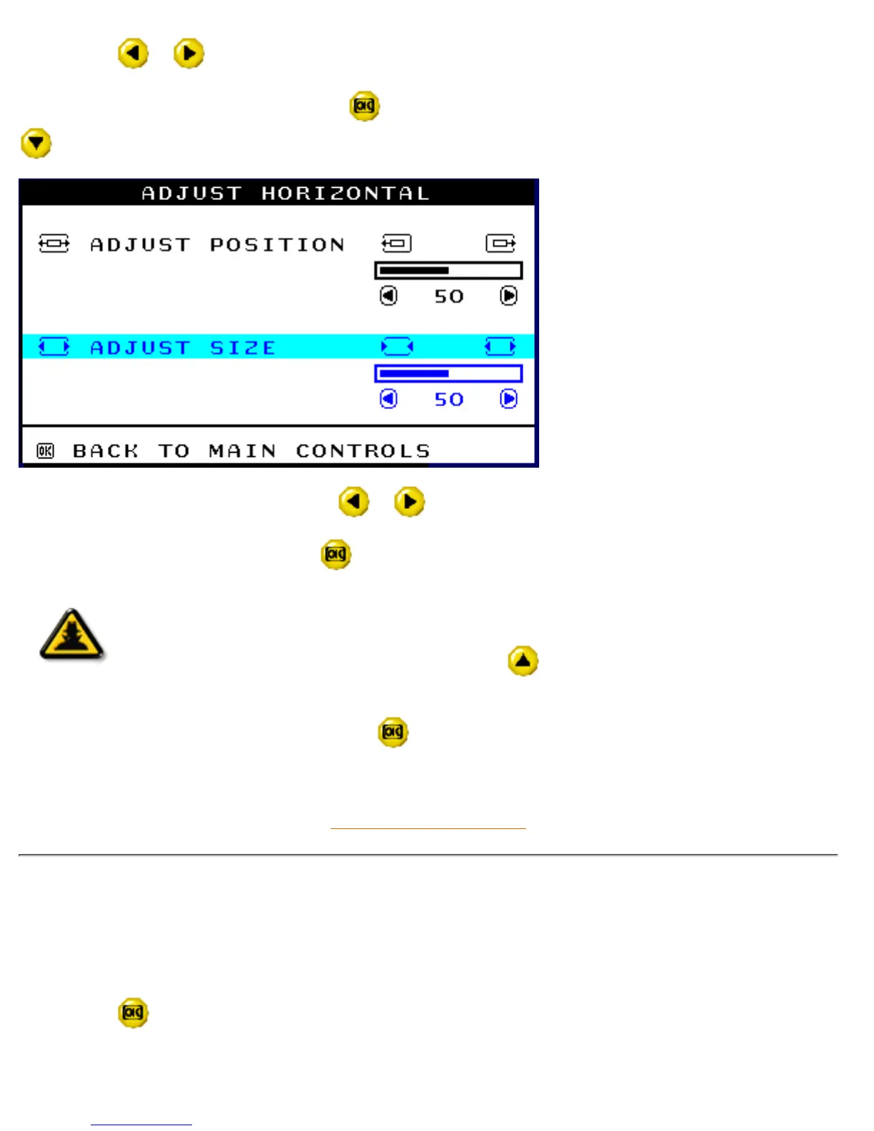 6) To adjust the horizontal size, press the or button.