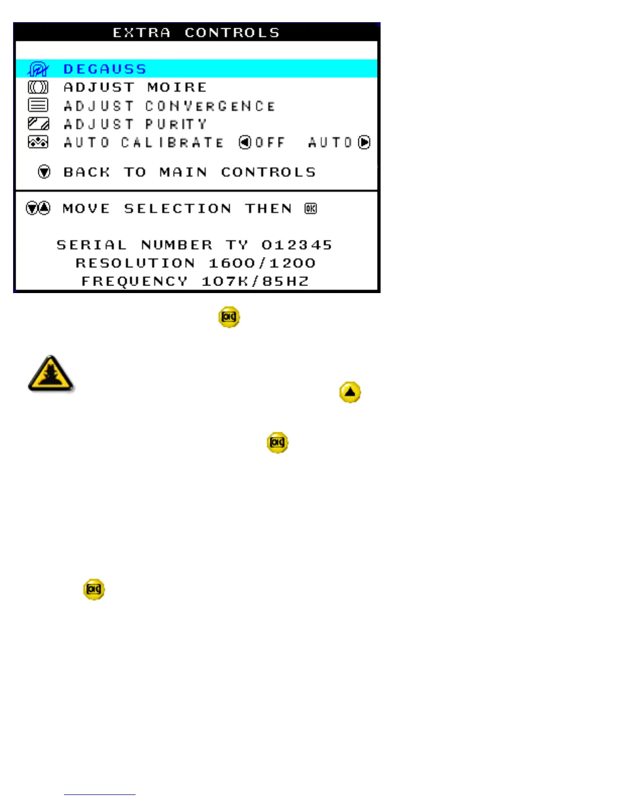 4) To degauss your screen, press the button. Your screen will be degaussed, then the MAIN