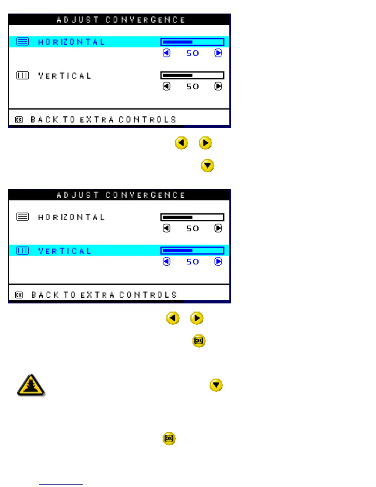 8) To adjust the vertical convergence, press the or button.