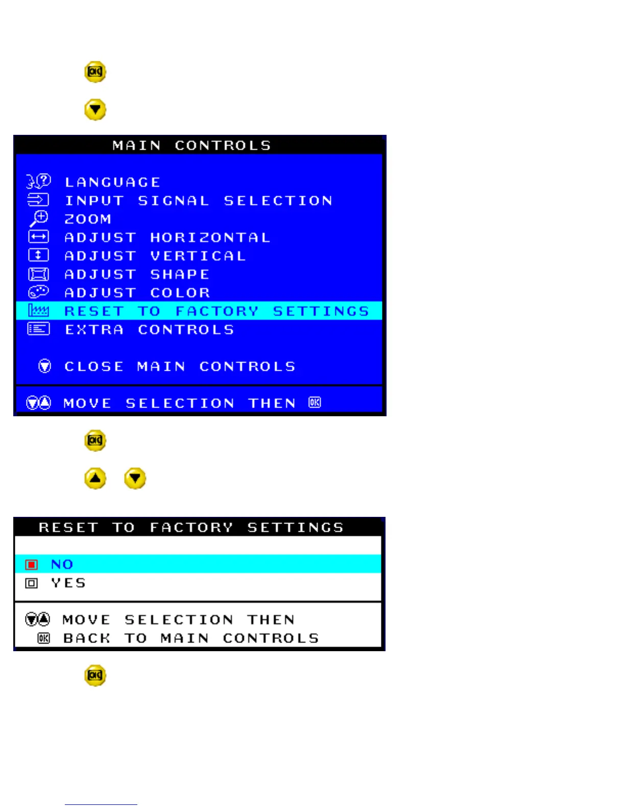 or button to select YES or NO. NO is the default. YES returns all settings to their