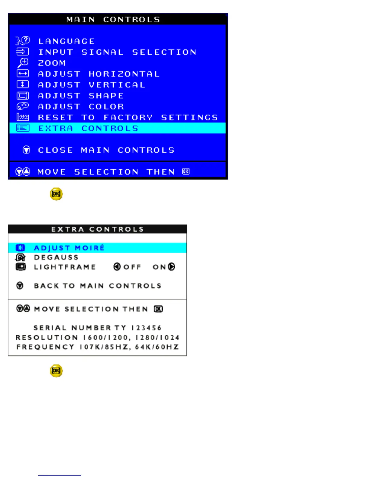 3) Press the button. The EXTRA CONTROLS window appears. ADJUST MOIRE will be highlighted.