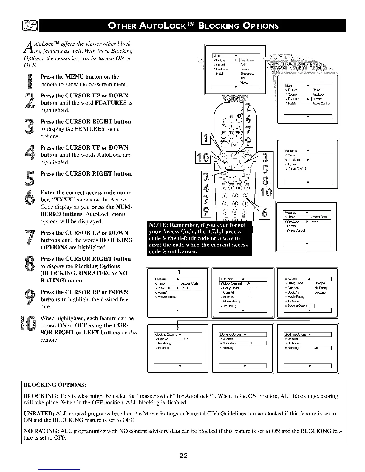 BLOCKING: This is what might be called the "master switch" for AutoLockTM, When in the ON position, ALL blocking/censoring