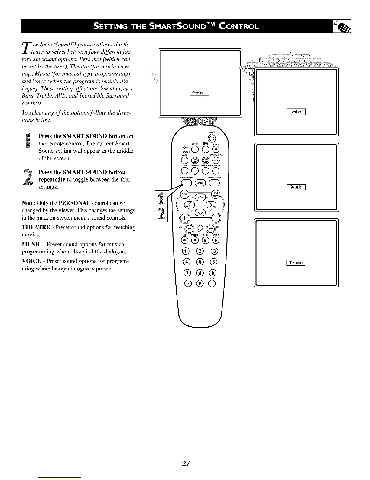 Tthe SmartSound TM feature allows the lis-