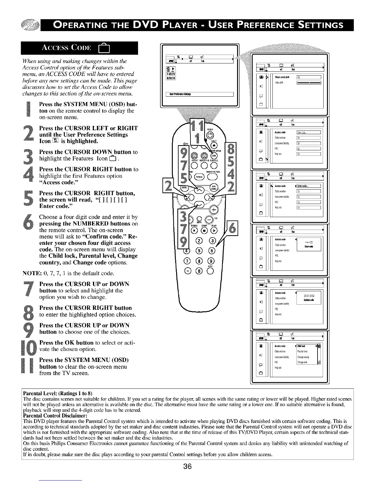 according to technical standards adopled by lhe set maker and disc content industries. Please note that the Parentll Control system will not operate a DVD disc