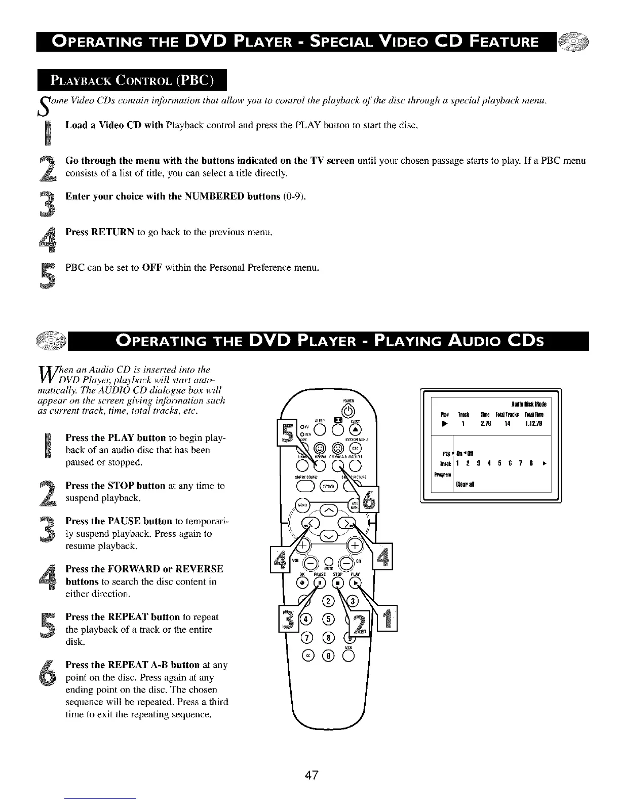 Some Video CDs contain information that allow you to control the playback of the disc" through a special playback menu.