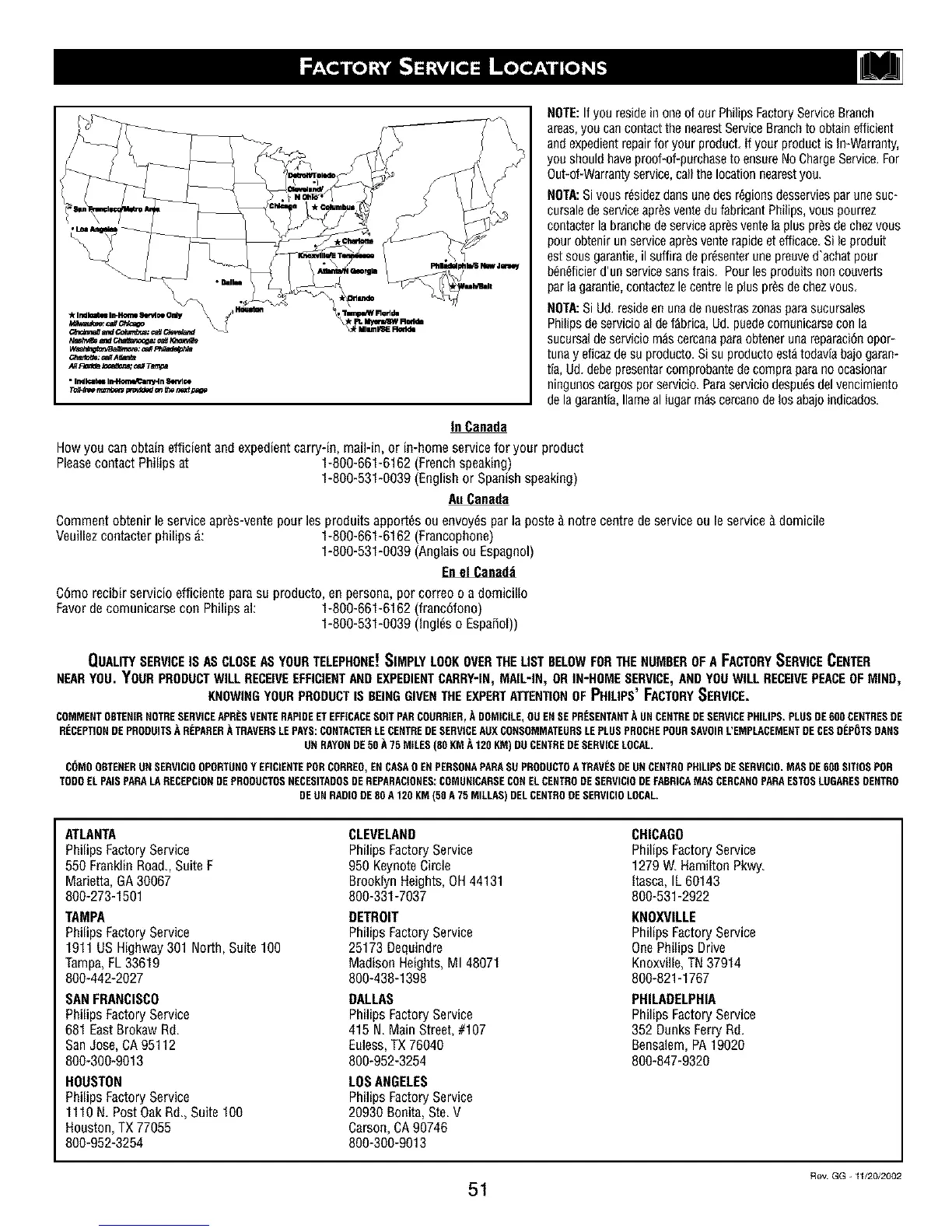 NOTE:If youresideinoneof our PhilipsFactoryServiceBranch