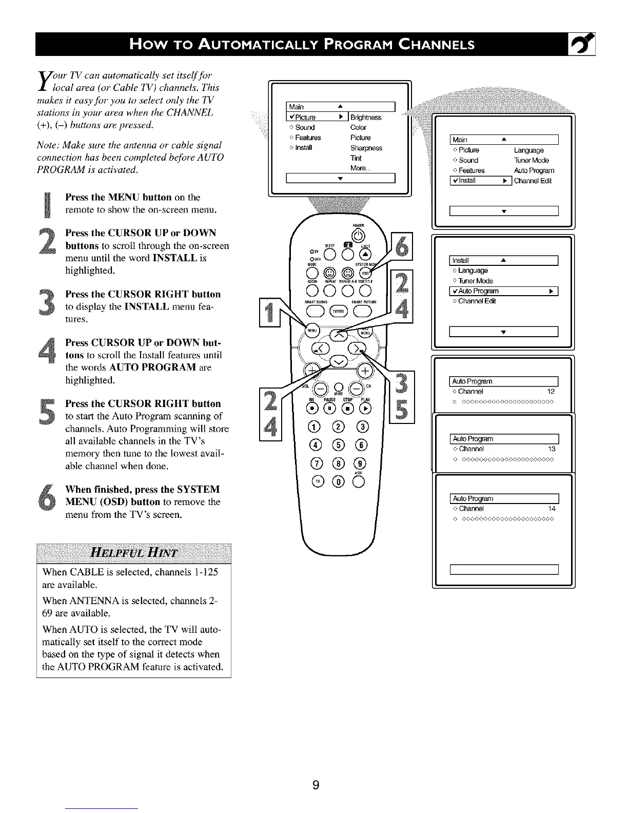 Press the CURSOR RIGHT buttonto display the INSTALL menu fea-