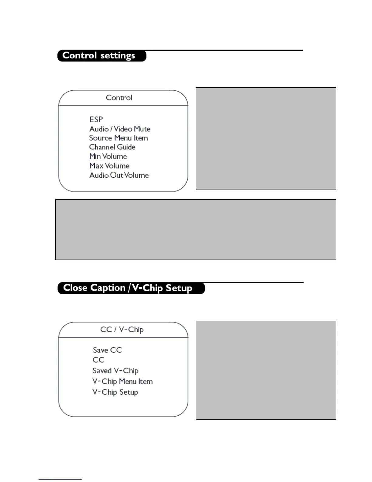 V-Chip Setup: This sub-menu allows the setting