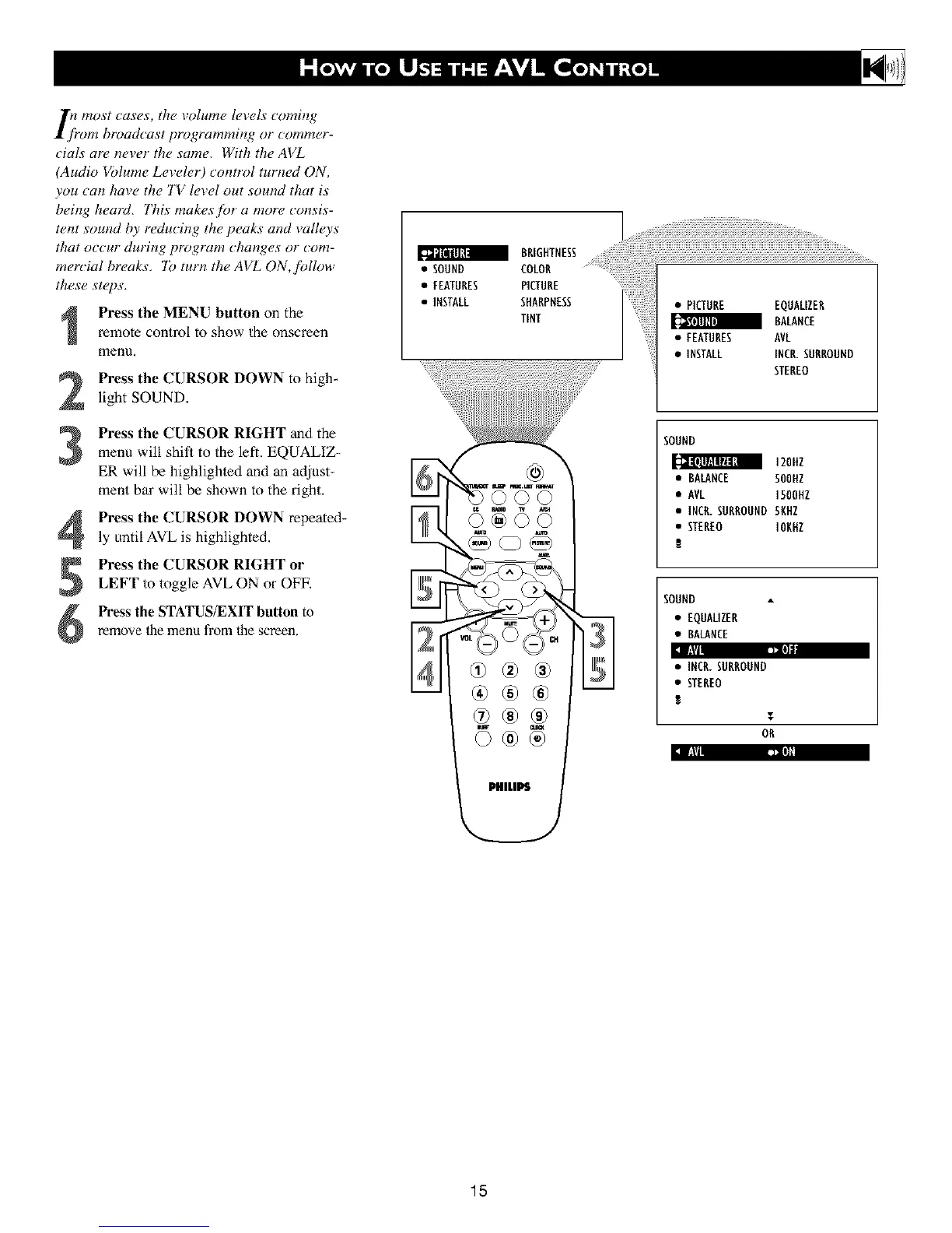 LEFT to toggle AVL ON or OFF.