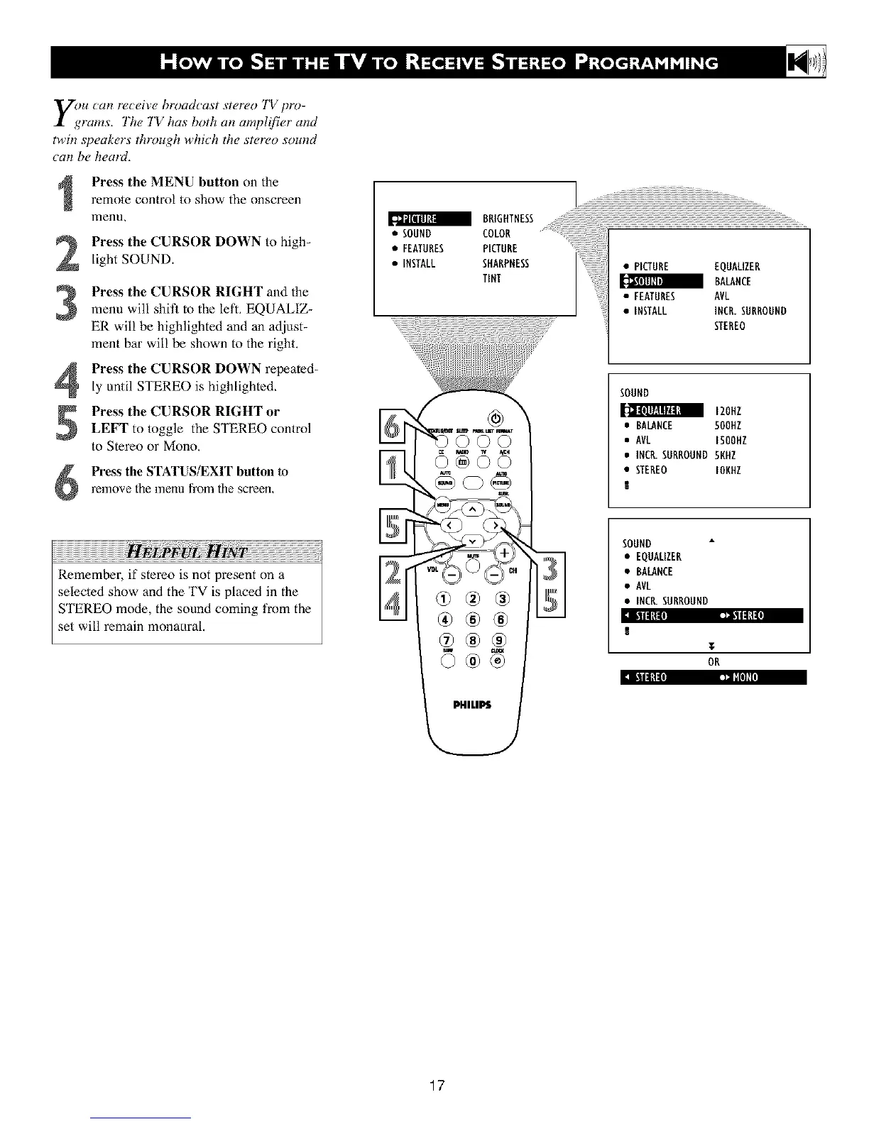 ly until STEREO is highlighted,