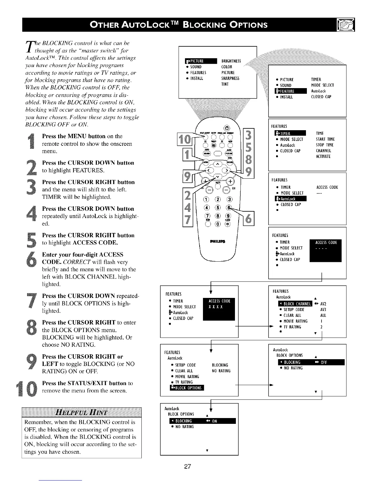 Remember, when the BLOCKING control is