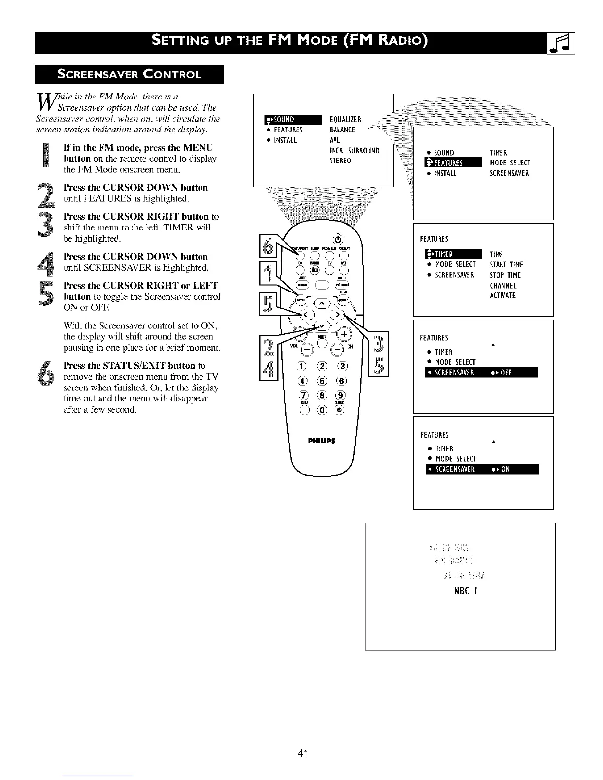If in the FM mode, press the MENUbutton on the remote control to display