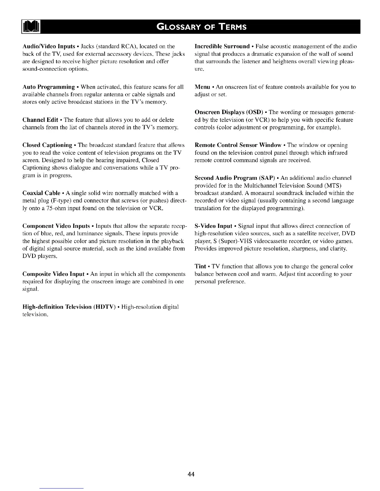 Tint • TV function that allows you to change the general color