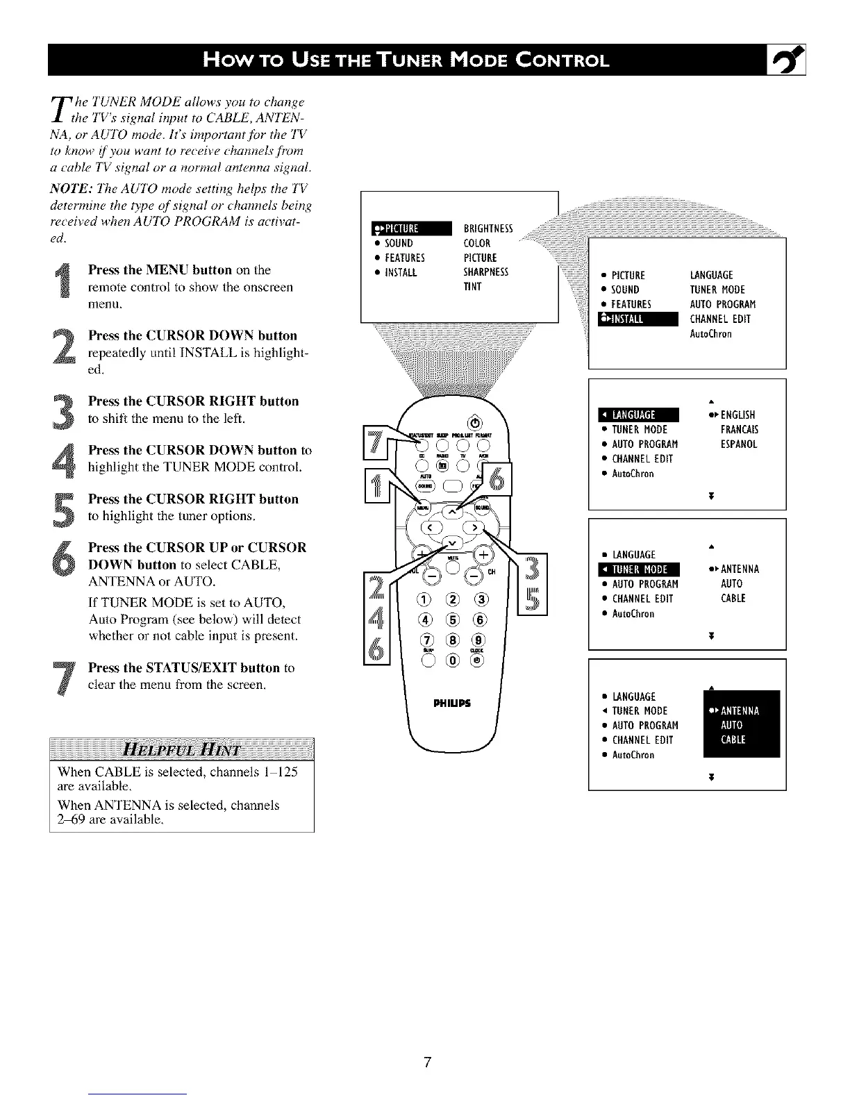 he TV s siglzal input to CABLE, ANTEN-