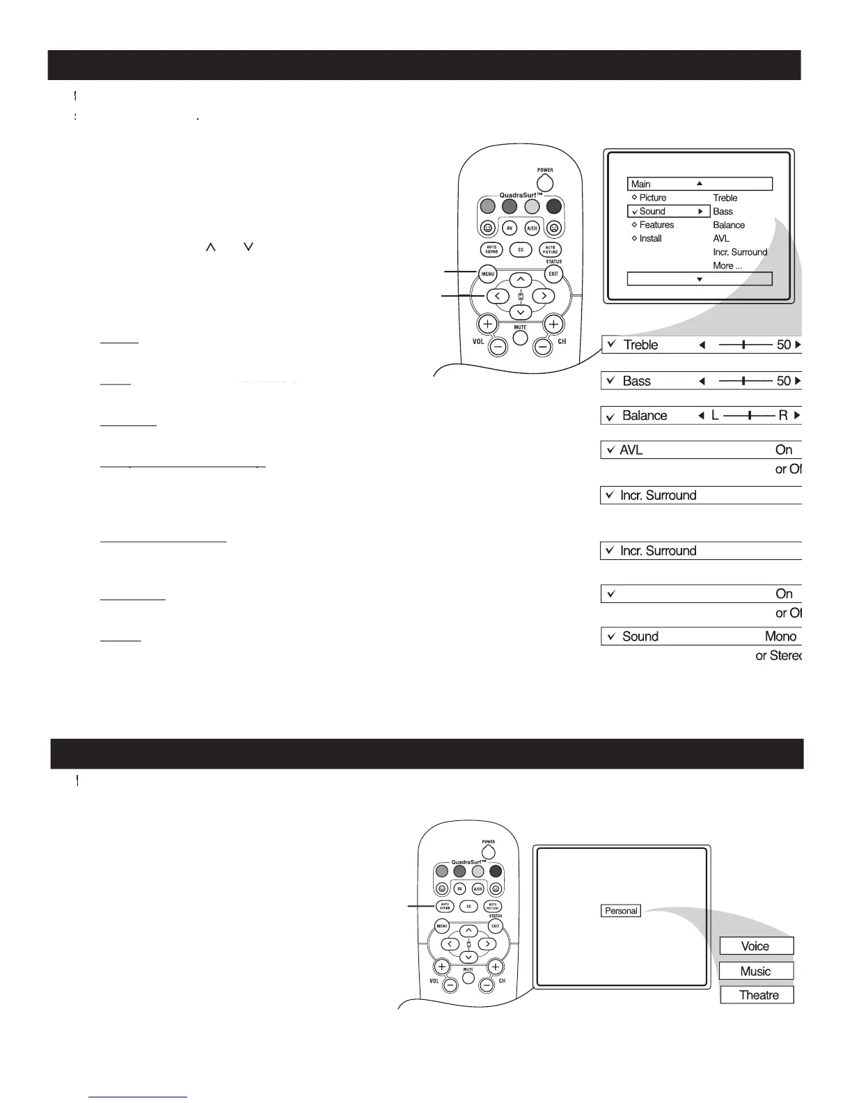 o adjust your TV sound controls, select a channel and use the Sound Menu Controls listed below. Your selection is