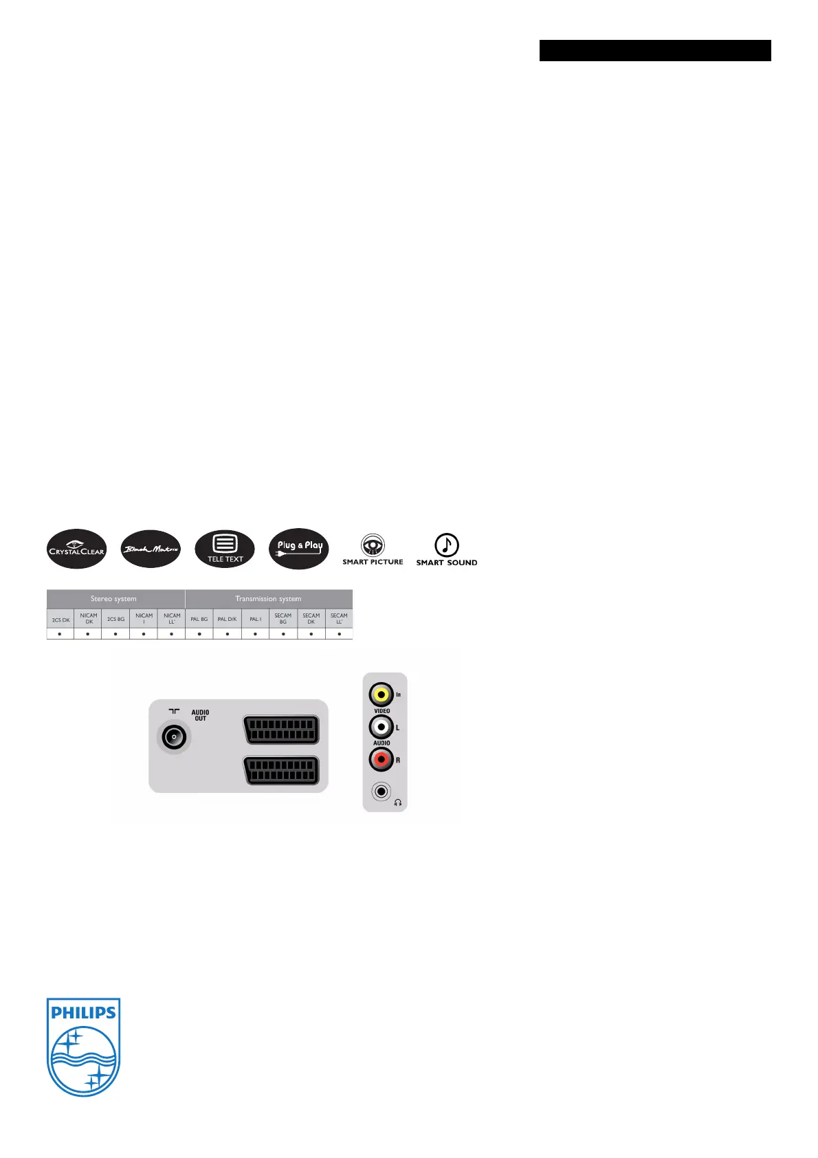 • Aerial Input: 75 ohm coaxial (IEC75)