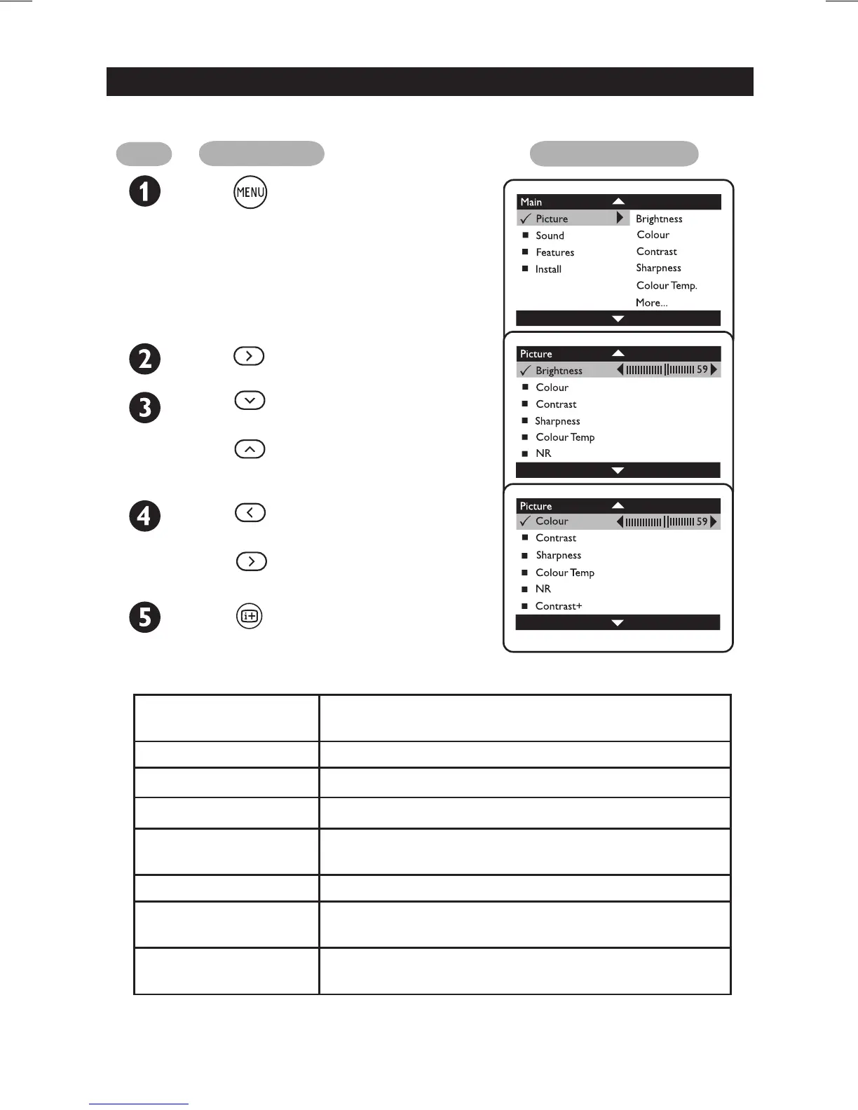 The picture menu allows you to make adjustments to the picture.
