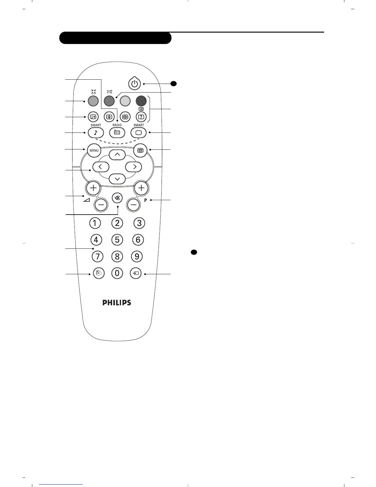 Lets you place the TV set on standby.To turn on the