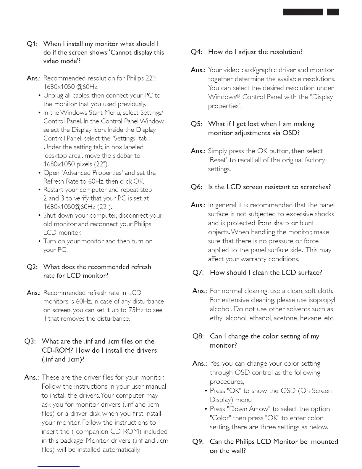 Philips 220BL2CB/00 - Faqs (Frequently Asked Questions)