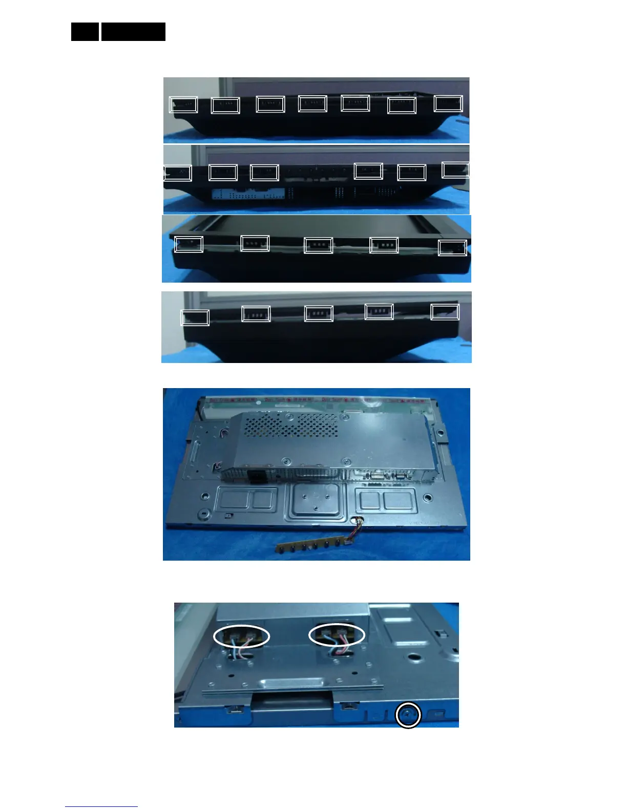 3. Use disassembly tool to open 7 latches at top, 6 latches at bottom, 5 latches at left and 5 latches at right of