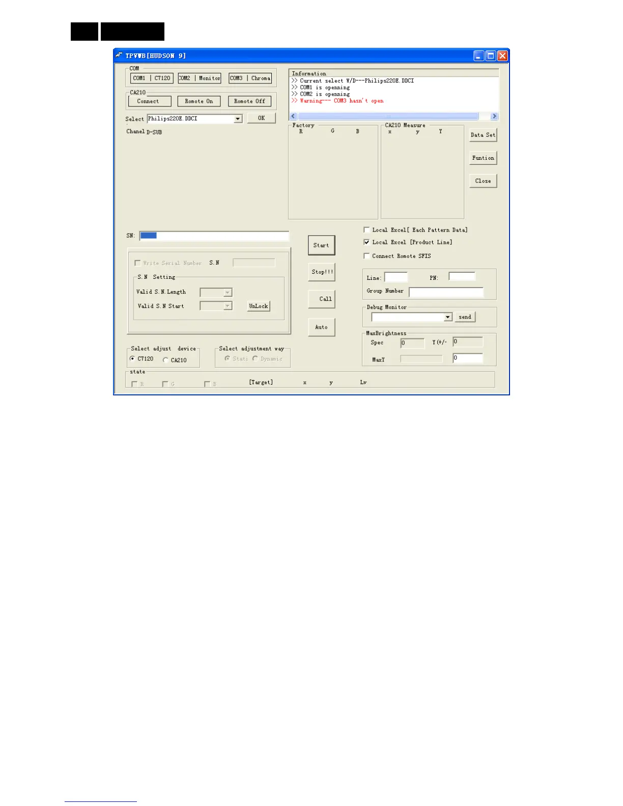 Connect the signal to the monitor, the monitor displays white-picture, use CA-210 to measure the Color Temp of the