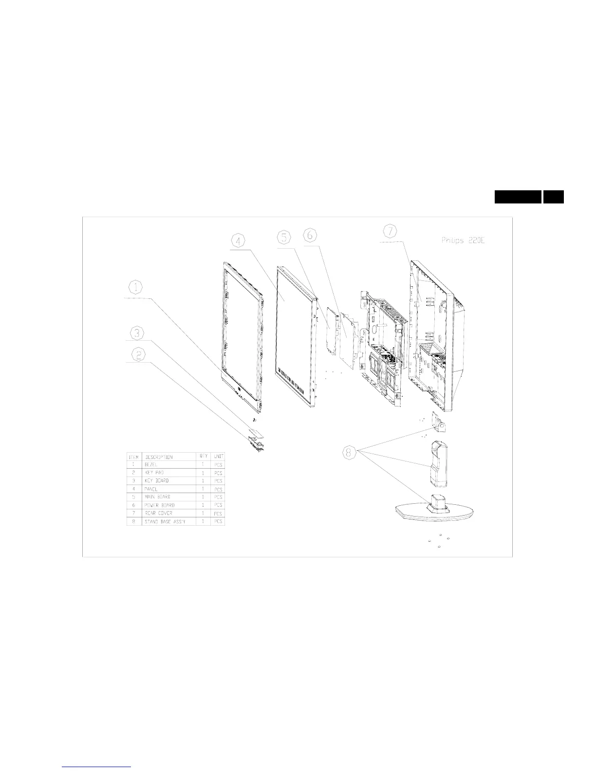 Philips 220E1SB/00 - Monitor Exploded View