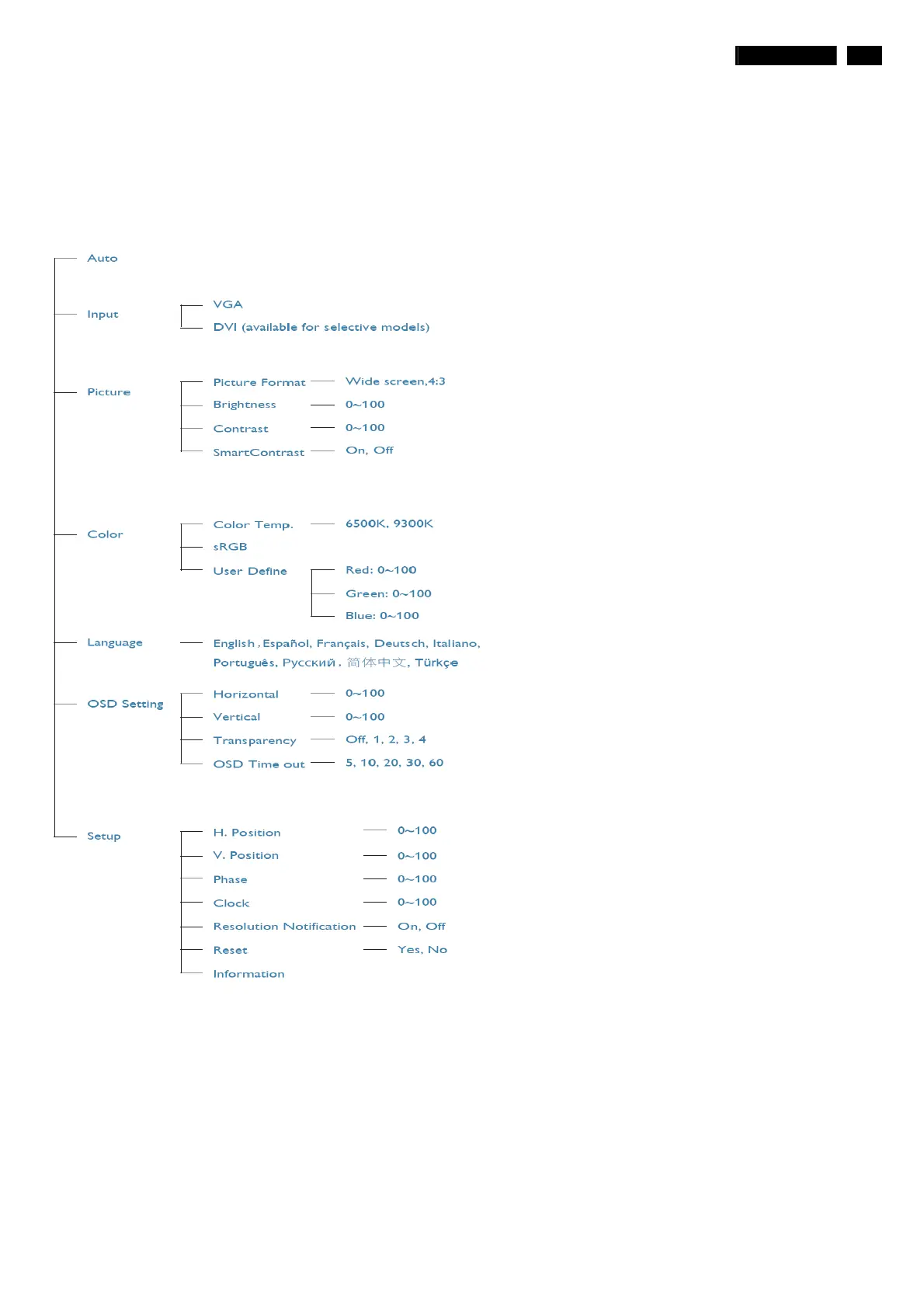 Below is an overall view of the structure of the On-Screen Display. You can use this as a reference when you want to work