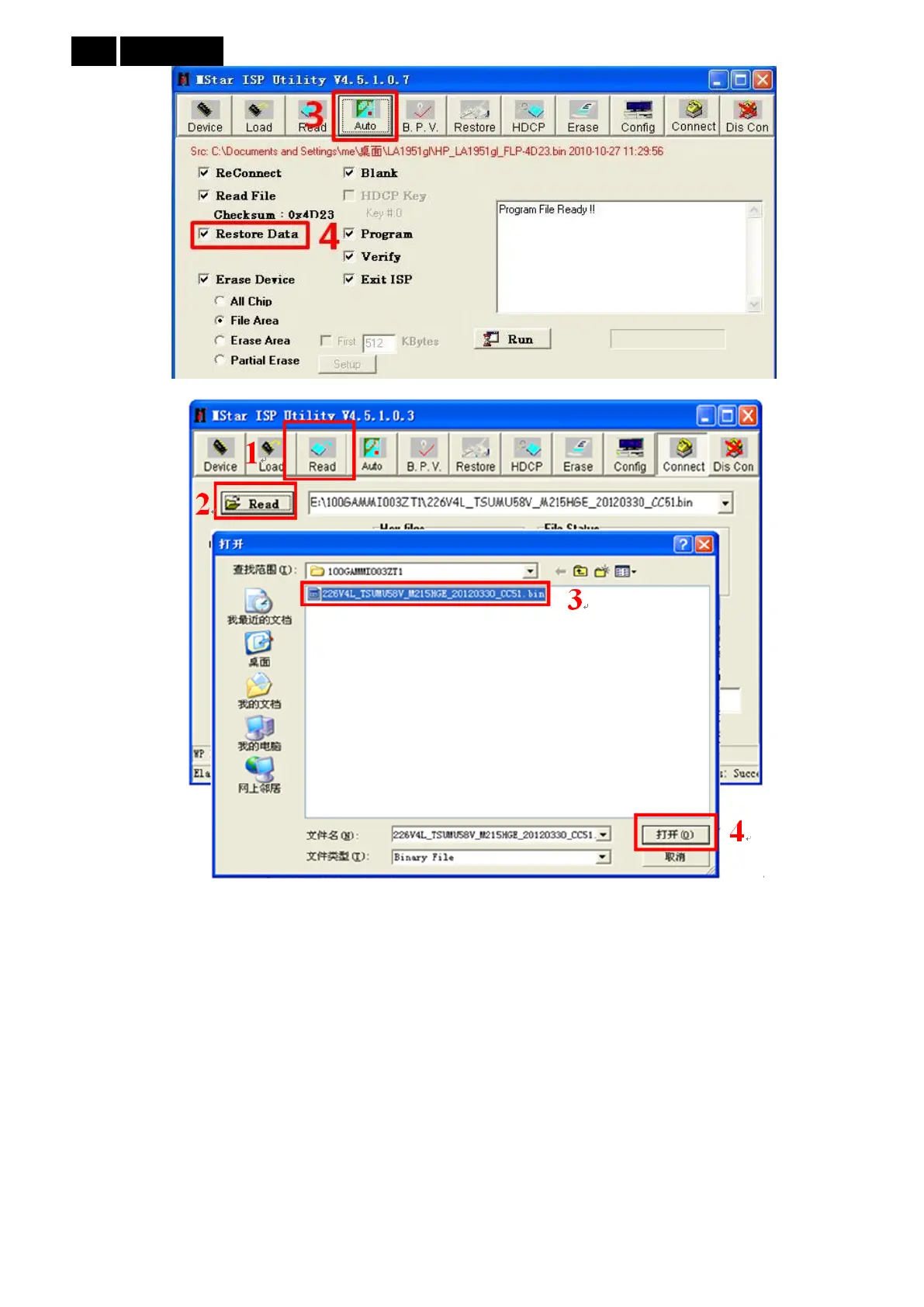 5. Click Auto to enter lSP window, clickRun” to start programming.