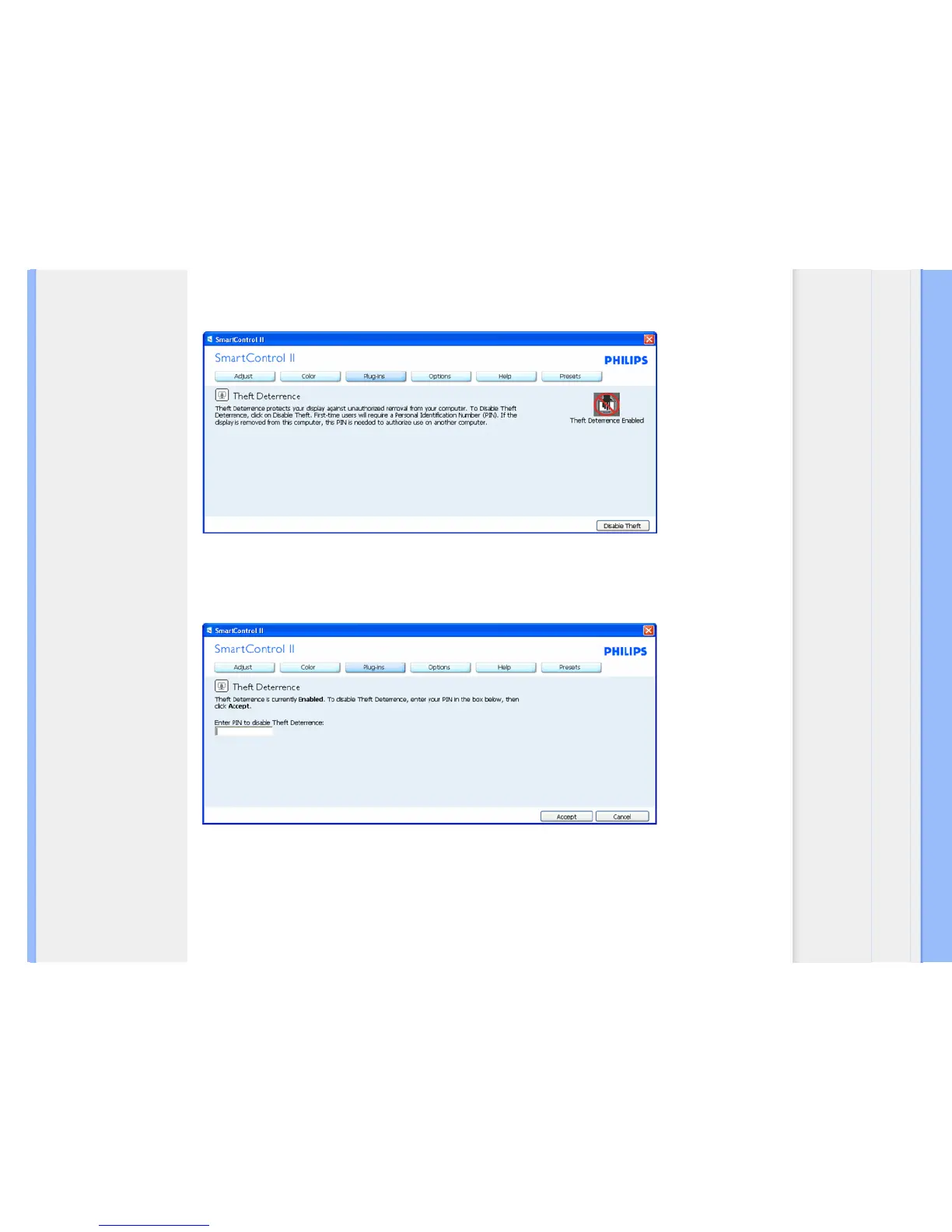 2. Disable Theft opens pane screen on next page.
